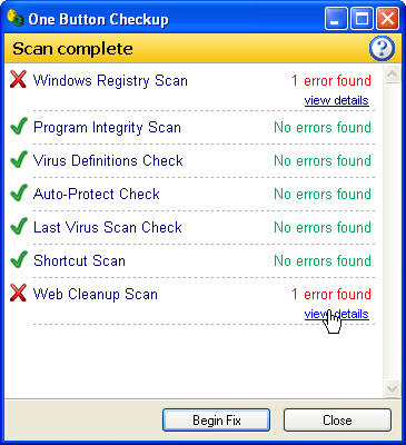 When the scan is finished, I click view details on the Web Cleanup Scan if it finds any errors.