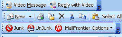 MailFrontier places a configuration icon in the taskbar, and a toolbar in Outlook or Outlook Express.