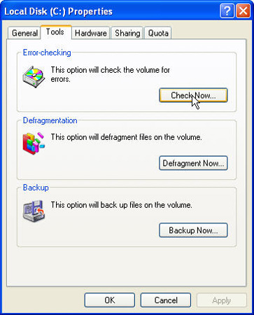 Click Properties, then the Tools tab on the subsequent form. The top of three choices is error checking. Click Check Now.