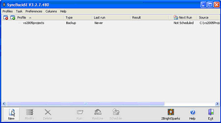 The first time you open SyncBackSE you’ll be asked to create a profile a particular backup procedure.