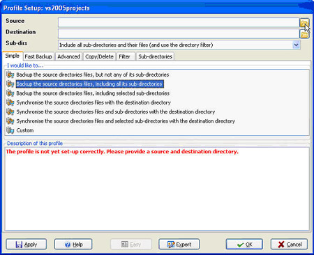 Now you fill out the details of the profile – what exactly you want copied. What folder and to what folder.