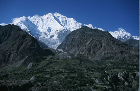 This is Rakaposhi, a 25,000-foot Karakorum giant that towers above the hidden kingdom of Hunza in far northern Pakistan. It is one of the world’s great sights to wake up in the morning and watch the sunrise light up Rakaposhi from the balcony of your room in Karimabad, Hunza’s capital.