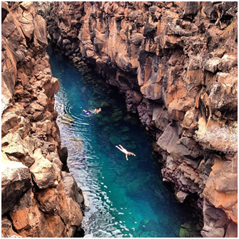 After establishing ourselves at the Angermeyer Waterfront Inn, we don our swimsuits and water shoes then head for a magical place called Las Grietas, cracks or crevices in the lava oceanside cliffs with water of surreal pure blue. You can jump off the cliffs or just laze in the water.