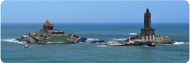 These two islets are just off the coast. On the left is the Vivekenanda Rock Memorial – on the right, the giant statue honoring Thiruvalluvar, the most revered Tamil poet and philosopher who lived some 2,200 years ago. We’ll visit both.