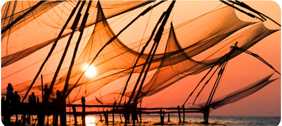 We return in time to explore Old Cochin, the millennia-old center of Indian spice-trading for the Chinese, Greeks, Romans, Arabs, Portuguese, Dutch and British – and take those sunset photos of the Chinese fishing nets right next to our Old Harbor hotel.