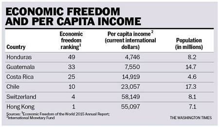 Honduras lags and suffers because of the lack of the rule of law and economic freedom.