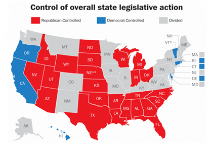 Add to this the states in red with Pub governors (Note: Louisiana has a Dem gov-elect):