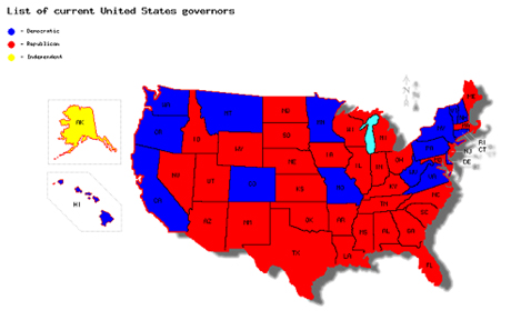 PubGovernorStatesPlus the states with Pub majority US House delegations: