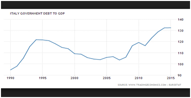 041316_AEP4Italy’s debt is not coming down despite the eurozone recovery. Time is running out Credit: Trading Economics