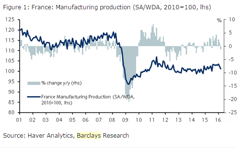 aep2_051116French manufacturing has never recovered its previous level, and is at risk of rolling over again