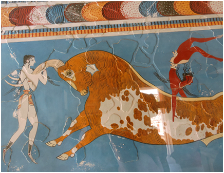 Yet like many myths, it was constructed out of something that really existed.  Atlantis is the Minoan Civilization of Crete, Europe’s first and oldest. Named by archaeologists after King Minos of Greek mythology, whose palace was so huge it was called the Labyrinth in which roamed the Minotaur monster, it emerged out of the Bronze Age almost 5,000 years ago.