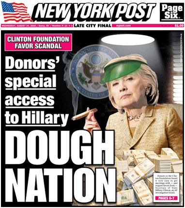 The story inside was headlined:  A Nation for Sale under Hillary Clinton.  But this isn’t a Post scoop – this is an exposé of the Clinton Foundation’s naked criminality by the media’s gold-standard flagship, the Associated Press itself.   Every newspaper in the country uses an AP newsfeed.  As such, it cannot be ignored by the Libtard Media and it is utterly devastating.