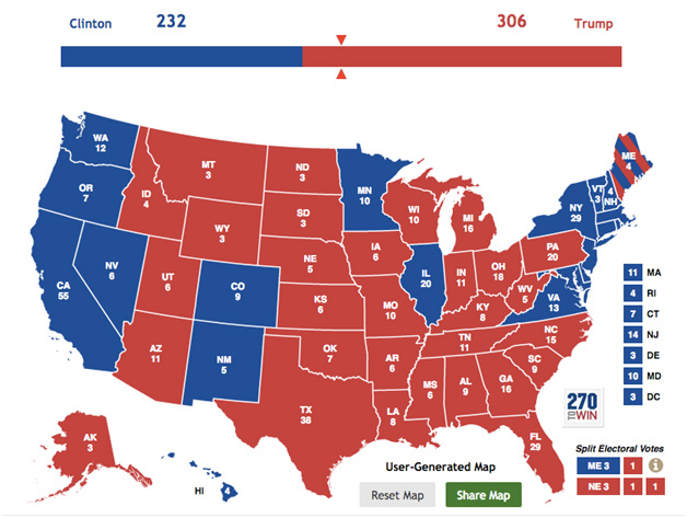 While the final popular vote count is still not in (and there’s some question as to whether Trump or Clinton will win it), the Electoral College was perfectly clear in the wee hours of election night: