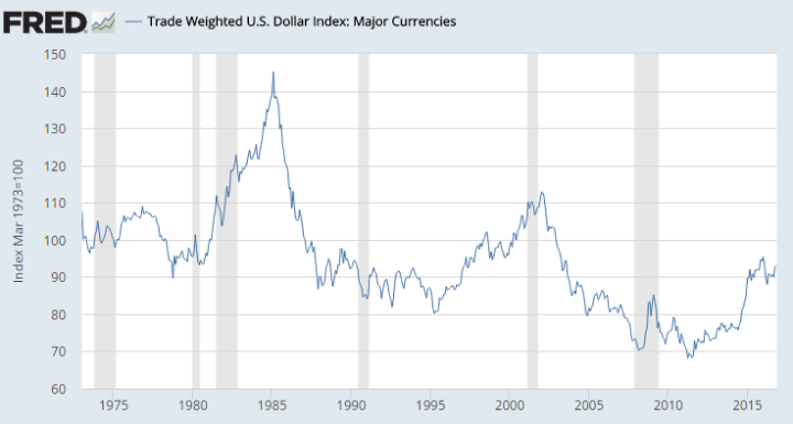 The consequence of this “loose fiscal/tight money” mix was an explosive rise in the dollar as the US sucked in capital from the rest of the world, with grim consequences for dollar debtors in Latin America.
