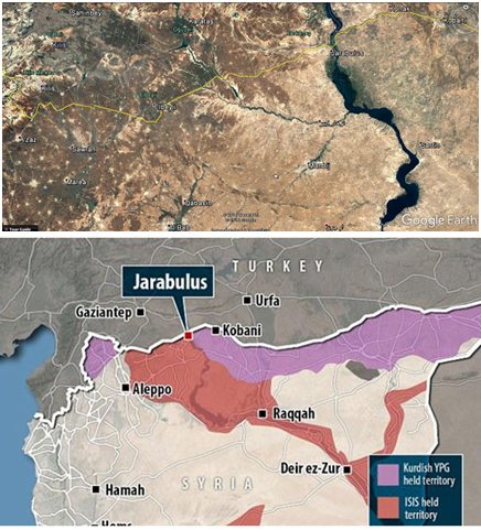 What actually happened was that a series of anti-ISIS Arab Military Councils had formed their own militias in the region composed of local fighters.  They had succeeded in liberating the town of Manbij from ISIS south of Jarabulus a few weeks before, and were now poised to take Jarabulus as well.