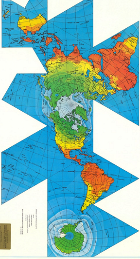 The only flat map accurately depicting a round world is Buckminster Fuller’s Dymaxion Spaceship Earth Map, marvelously showing all seven continents as an archipelago of islands.