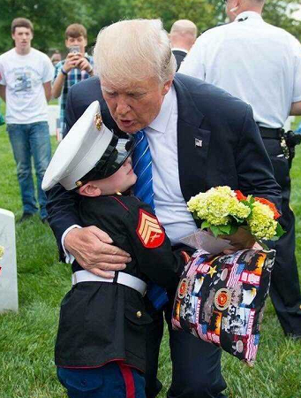 After the speech, Trump was introduced to a six-year old boy, Christian Jacobs, dressed as a Marine because his father, Marine Sgt. Christopher Jacobs, had been killed in a training accident in 2011.