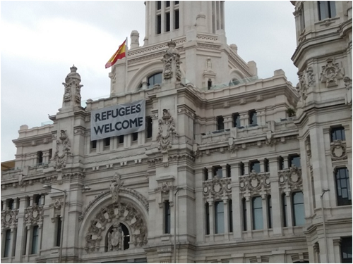 “The council, run by leftist bloc Ahora Madrid, made the move (to hang the banner) to express its solidarity with the increasing numbers of asylum seekers from countries such as Syria who are desperately trying to enter Western Europe.”