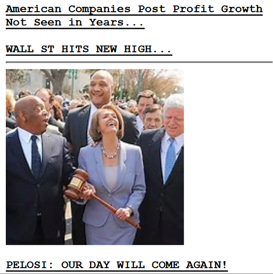 It is no accident, Comrades, that Drudge juxtaposed these particular headlines yesterday (7/31), together with a 10 year-old photo of Bela Pelosi celebrating becoming Speaker back in January 2007.