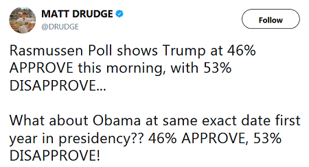 Yet on the previous day (12/27), the Drudge headline was about the Gallup poll showing Obama still being the most admired man in America as he has for the past 10 years.