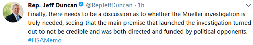 Oh, yes… The Mueller investigation has been knee-capped. Per Congressman Jeff Duncan: