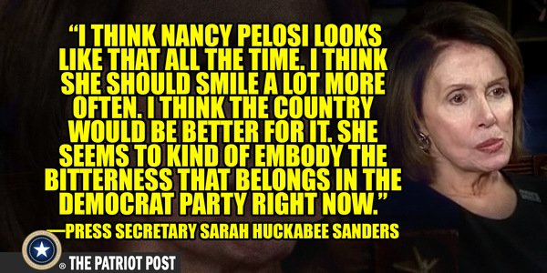 Maybe something’s wrong with her dentures.  When White House Press Secretary Sarah Huckabee Sanders was asked about Pelosi’s SOTU reaction, she said there was nothing unusual about it at all: