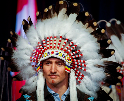 Prior to his world tour, Trudeau was in Saskatchewan honored as an Honorary Canadian Indian with the name of Chief O-See-Nah-Ko-Wik-E-Nah, translated in the media as Walking Eagle.  TTP’s source confided that the literal translation in the native language is: Bird That Must Walk As So Full Of Fecal Matter Cannot Fly.