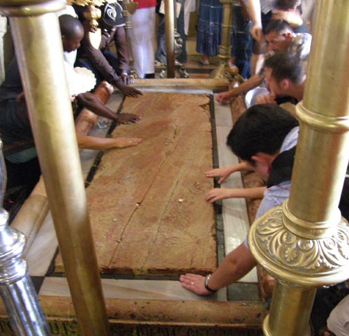 You’ll lay your hand on the Stone of Anointing, the slab Jesus’s dead body was laid upon after being taken down from the Cross.