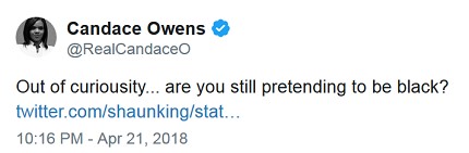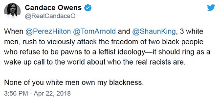 “Candace Owens is making money off of denigrating black folks for her mostly white audience,” asserted black sports broadcaster Herb Lawrence. “Same as that [NRA advocate Colion] Noir guy, same as [actress/activist] Stacey Dash, same as Allen West etc.”