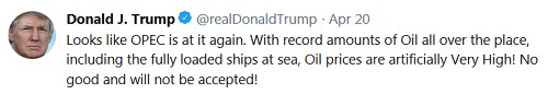 On Friday (4/20), President Donald Trump accused OPEC of “artificially” inflating their prices: