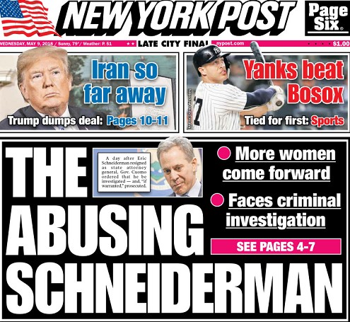 But the initial question immediately arises.  Since now six women (the NY Post has the latest per the cover story above) have reported near identical pathologies on the part of Schneiderman.