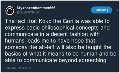 This just in.  Yesterday (6/21), Koko, Famed Gorilla that Learned Sign Language, Dies Age 46.  Comment: