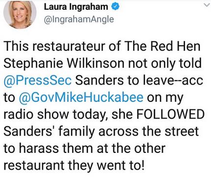 The Red Hen restaurant in Lexington, Va. has been getting lousy reviews on Yelp! ever since owner Stephanie Wilkinson denied service to Trump press secretary Sarah Huckabee Sanders and her family last Friday night. Here is one of the most devastating, from an expert in the hospitality industry: