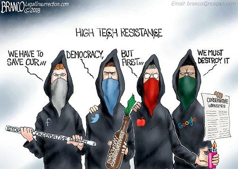 With the simultaneous and coordinated banning of InfoWars on Facebook, Apple, YouTube and Spotify on Wednesday (8/08), plus the notorious shadowbanning of conservatives by Twitter – see Paul Sperry’s “Twitter Is Run by Democrat Donors and Activists” (8/04), I know a lightbulb just went on above your head.