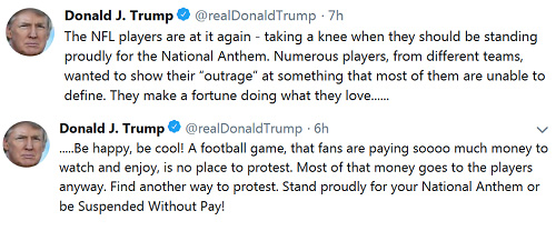 trump-tweets-081018Millions of fans are now asking, why pay money at all or even watch a bunch of spoiled brat crybabies who hate our country?  This is what these guys have become: