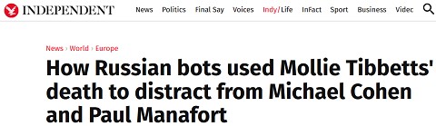 And sure enough – what do we find on the front page of the New York Times this morning?  How Politics Took Over the Killing of Mollie Tibbetts.  The Slimes is a bit more subtle than the Independent’s blaring out its bias in a headline, merely snidely inserting the same claim in this mid-story paragraph: