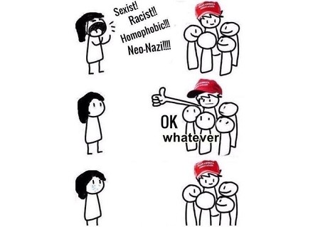 Accurate depiction, wouldn’t you say?  In addition to ridicule, the other thing to get the Left’s goat more than anything is to ignore them.  Like this, gets them every time: