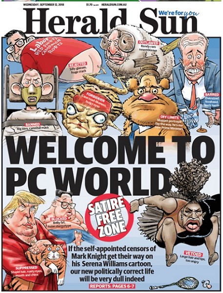 W+K succeeded in creating a cacophony of outrage (is there any other emotion Lefties feel?) in the global libtard media.  What it failed to do was get the cartoonist, Mark Knight, and his employer to apologize. On Tuesday (9/11), the Herald Sun ran this story: Herald Sun Backs Mark Knight’s Cartoon on Serena Williams.