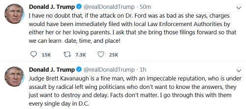 Blasey Ford’s MeToo accusation has no evidence at all, save for naming the two boys she says were abusing her along with Kavanaugh – both of whom categorically deny any such thing happened, as he does, with all three under penalty of felony perjury.  This is why POTUS nails it with his demand today (9/21) that the onus probandi be on Blasey-Ford: