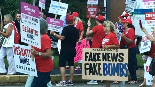 Reuters is reporting (10/25) that none of the bombs were designed to explode.  The headline claim is that they “were designed to scare rather than kill,” but the way the Fake News Democrat Media is exploiting the issue makes it clear that it’s a Dem October Surprise smear job on Trump’s GOP.  Like this Commie News Network chyron yesterday: