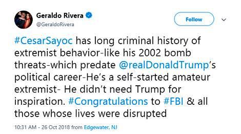Let’s hope Wray and Sessions order a forensic exam of Sayoc’s finances.  This is a set up – Sayoc was paid well to do this by Soros or someone of his ilk.  Bet on it.  But will it be uncovered in time to undo the damage?  Will it be uncovered at all?  That’s a bet you might not want to take.