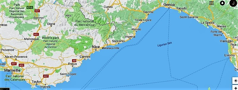 You’ve heard of, perhaps been lucky to have been to, the French Riviera, from east of Marseilles to St. Tropez, Cannes, Nice, Monaco and the Italian border.  You may also be familiar with the Italian Riviera (“riviera” is Italian for “coastline”) from Sanremo to La Spezia.