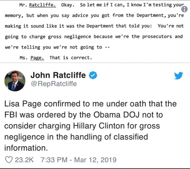 On Tuesday (3/12), he forced the release to the public the full unredacted transcript of Lisa Page, FBI collusionist and lover of Peter Strzok, closed-door testimony to Congress.