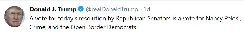 Yet POTUS quickly Vetoed the bill as soon as it reached his desk this afternoon, which calls McConnell’s bluff.  But is it a bluff?  Would The Turtle signal to Pelosi that it’s Impeachment Game On, that if she gets a simple majority vote (that’s all it takes in the House) to vote for impeachment, that he can guarantee enough RINO votes to reach 67 and convict?