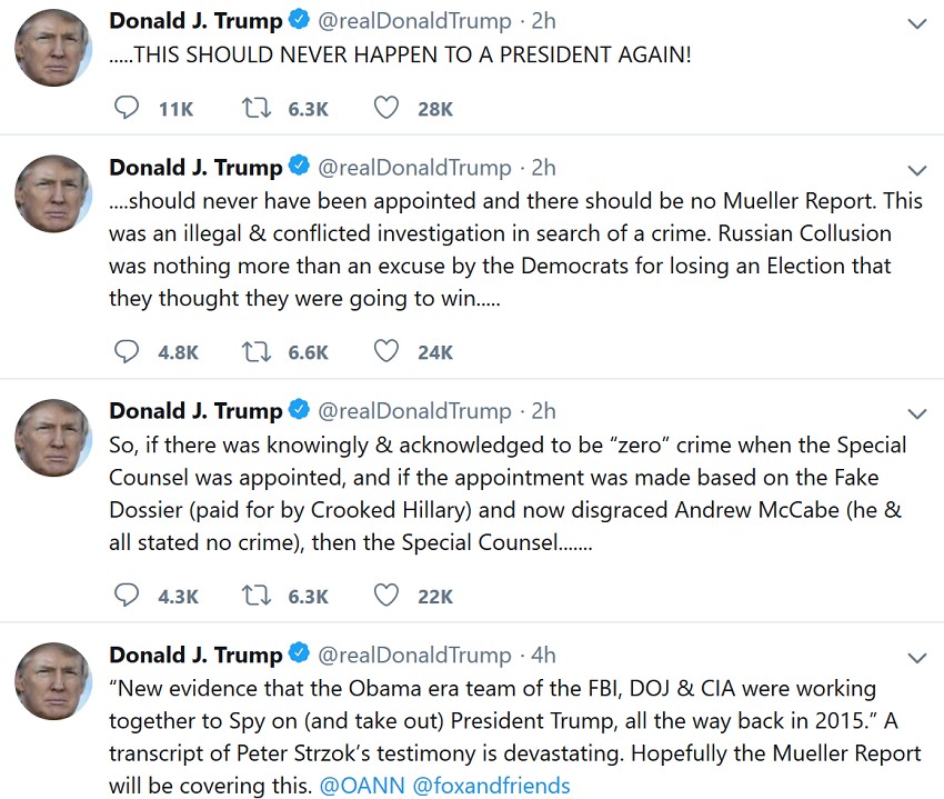 And yesterday (3/14), he released to the public the full unredacted transcript of major FBI collusionist Peter Strzok.