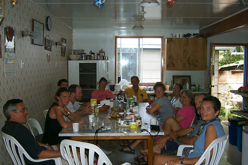 The islanders are renowned for being open-hearted and hospitable, so we’ll get an ultra-warm welcome.  This is lunch. For example, at Tom & Betty Christian’s.  Tom (yellow shirt) is the great-great-great grandson of Fletcher Christian.
