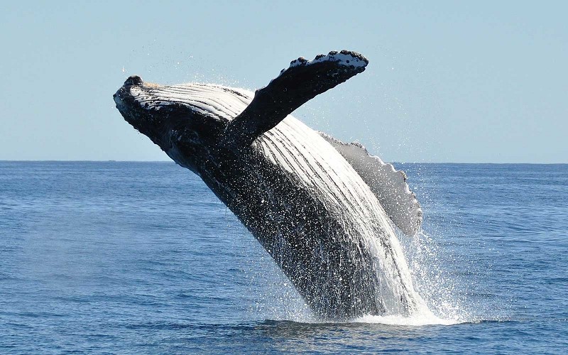 A common habit of most whales is to breach or leap out of the water.  It’s a thrilling sight.  Here’s a humpback breaching.