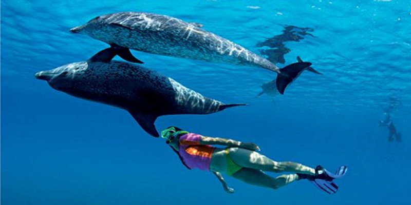 This is a morning to remember.  But the day is far from over.  In the afternoon we go snorkeling with dolphins.  They’re wonderfully playful and you get to play with them.