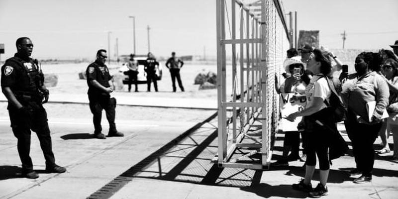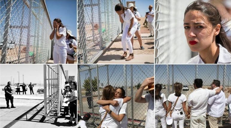 Here are photos (taken last year) of AOC sobbing at a fence near the border separating her… from an empty parking lot.
