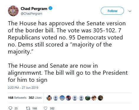 In what the New York Times described as a “stinging defeat” for Democrats, the House passed Thursday (6/27) the Senate version of a bill to address the emergency at the border.